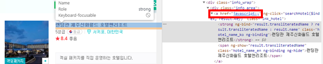 호텔 url 데이터 수집 부분에서 홈페이지 요소 확인을 해보니 html 주소가 없었다 !!!!!!