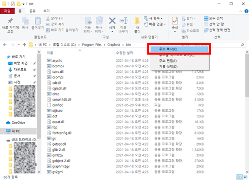 시스템 변수 path에 경로 추가 : ~~~\bin\dot.exe