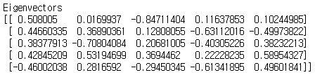 4. 고유값이 가장 큰 순으로 추출된 고유벡터를 이용해 새롭게 입력 데이터를 변환