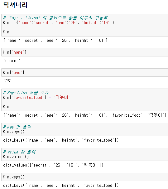 [기본 문법] 데이터 저장소 2. 딕셔너리{} 본문