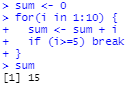 (예시. 1부터 10까지의 합을 계산하는데, i가 5 이상이면 break)