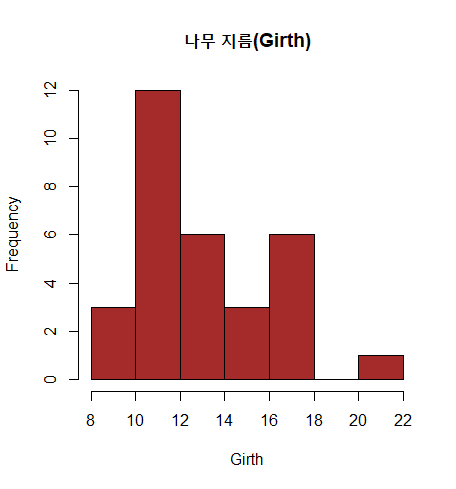 (3) 나무 지름(Girth)에 대해 히스토그램을 작성하시오.