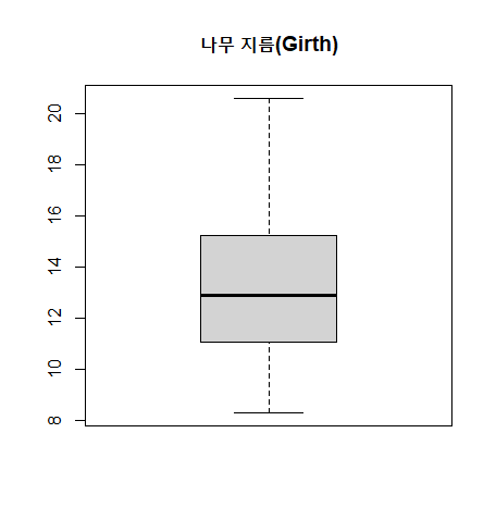 boxplot(trees$Girth, main="나무 지름(Girth)")